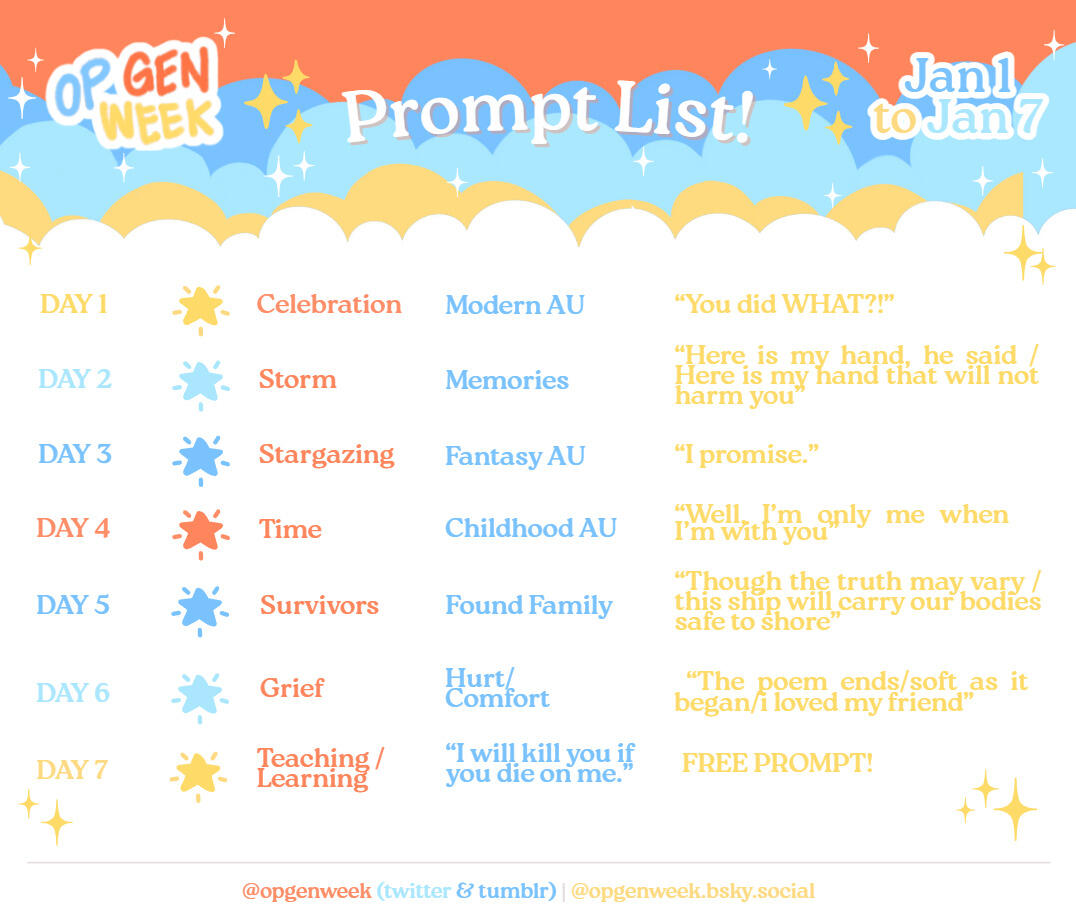 OP gen week as an event will be strictly SFW, so anyone and everyone may participate in it!3. no nsfw/dead dove content allowed!